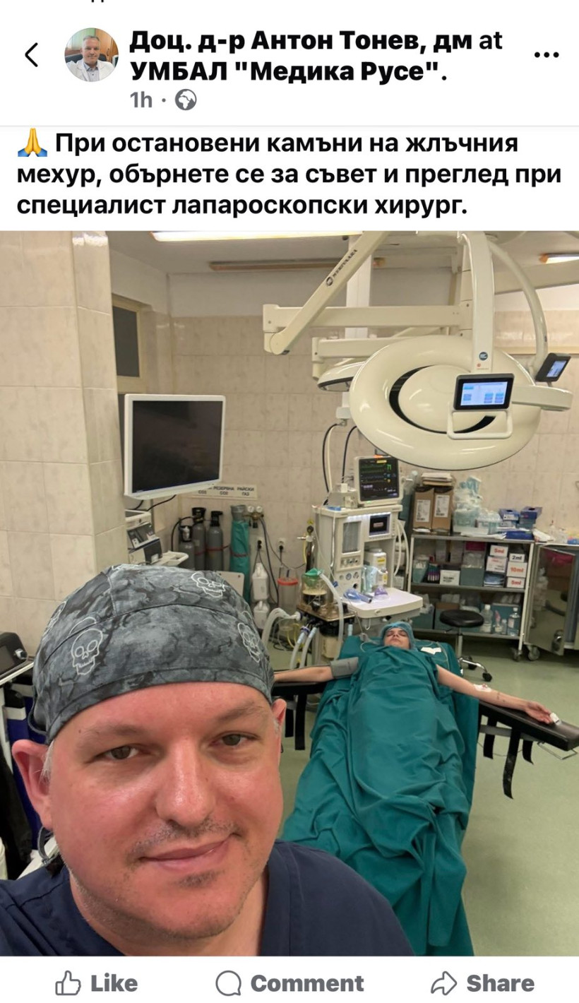 Отвратителен пример как в името на саморекламата един лекар може да потъпче Хипократовата клетва даде бившият депутат от ППДБ Антон Тонев, коментираха омерзени потребители в социалните мрежи. Бившият шеф на здравната комисия качи в личния си фейсбук профил меко казано унизителна снимка със своя пациентка на операционната маса.