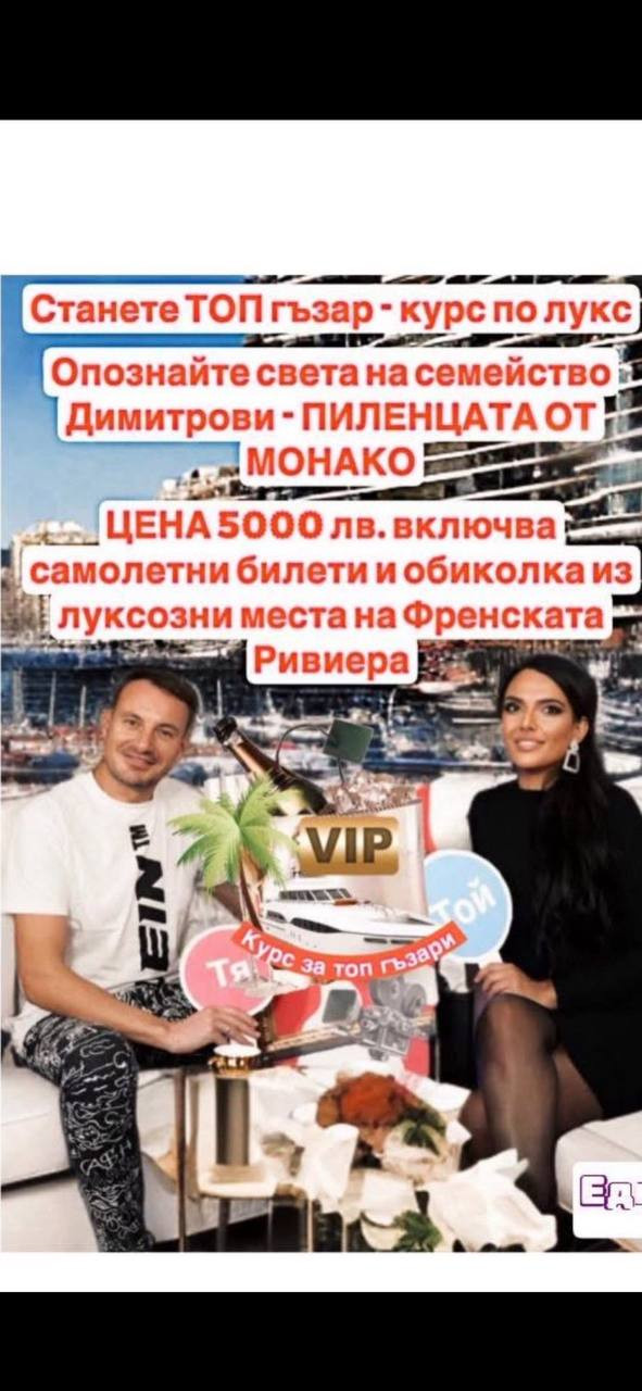 Очевидно „Пиленцата от Монако“, както станаха известни те, са толкова закъсали за пари, че вече си пускат услугите в интернет пространството. Там върви обява, че срещу 5000 лв. на човек предлагат двупосочен самолетен билет + обиколка на забележителностите на Френската Ривиера.