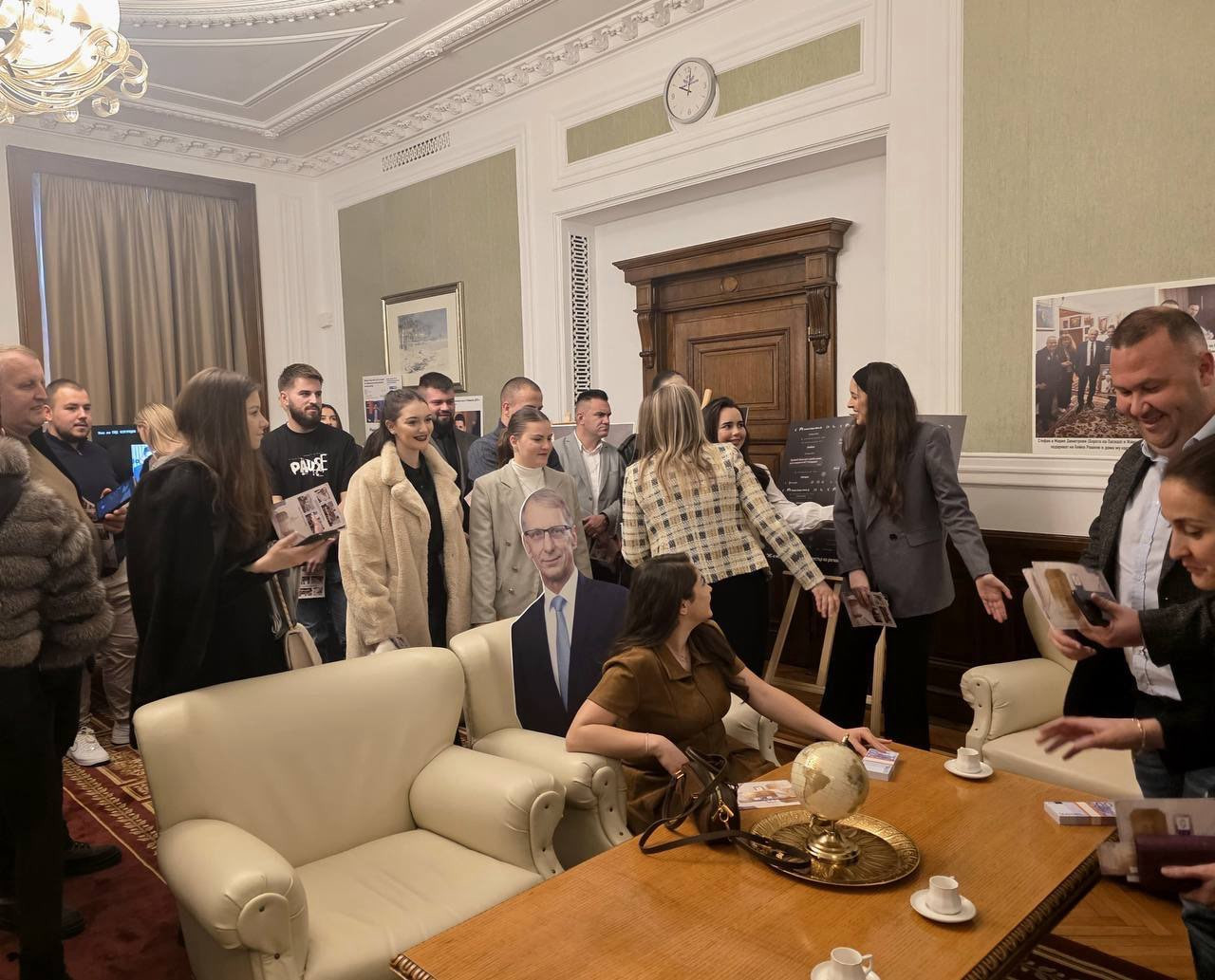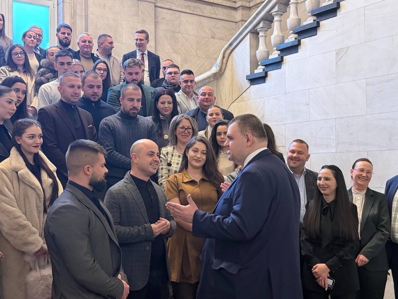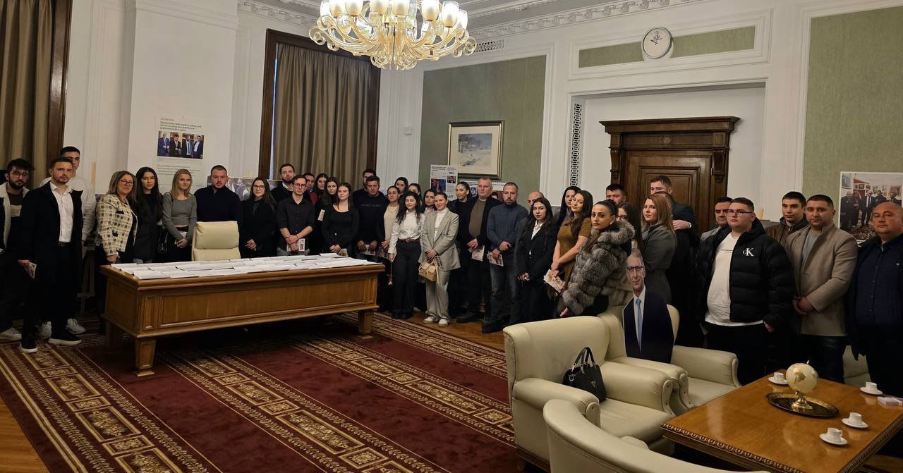 Лидерът на ДПС и ПГ на ДПС-НОВО НАЧАЛО Делян Пеевски се срещна с група младежи от област Благоевград, които посетиха Народното събрание и Музея на Сглобката, разположен в кабинет 222А.