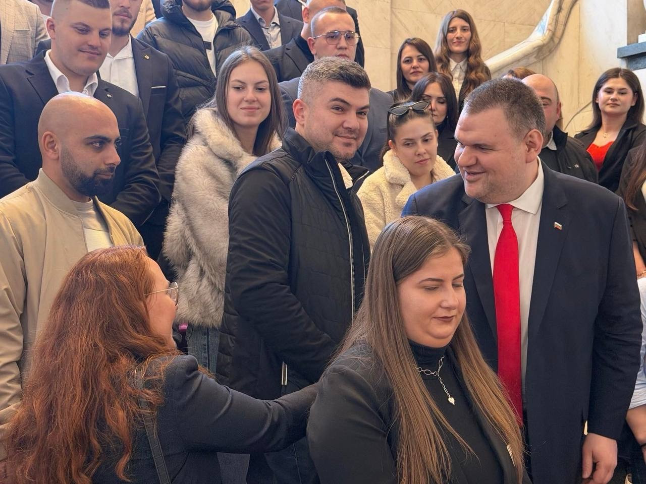 Лидерът на ДПС и ПГ на ДПС-НОВО НАЧАЛО Делян Пеевски се срещна с голяма група младежи от област Шумен, които посетиха Народното събрание и Музея на Сглобката, разположен в кабинет 222А.