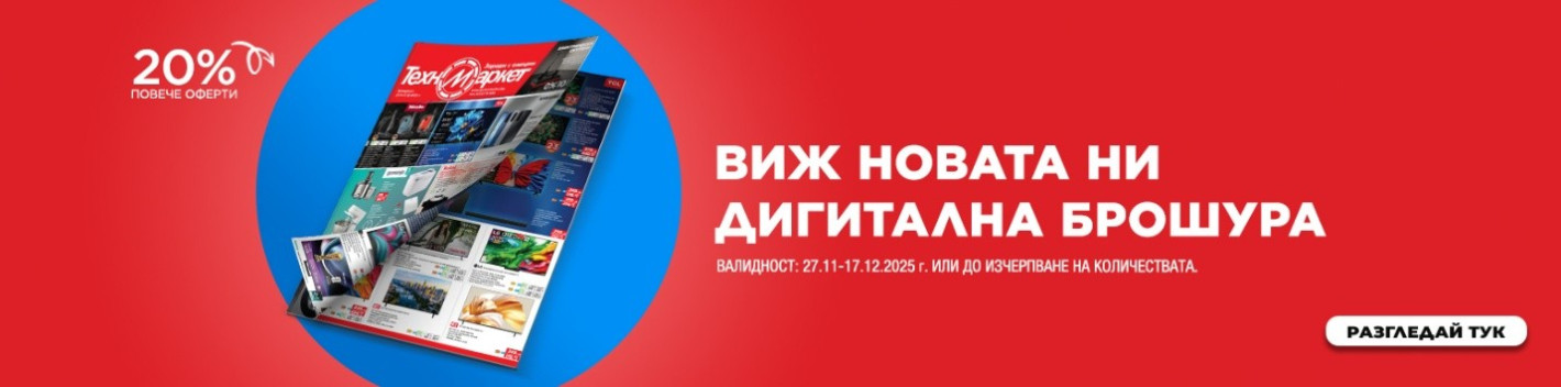 Новата дигитална брошура на Техномаркет идва с нови, още по-неустоими оферти! Разгледай любими марки и модели, възползвай се от СУПЕР изгодни предложения и пазарувай лесно, бързо и удобно.